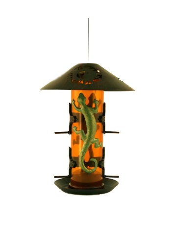As you lie on your hammock to take a siesta, you can watch the birds who come to feast at this fun bird feeder. Part of the Southwest Collection in our Lifestyle Collection series. The Avant Garden® Gecko wild bird feeder, part of our Southwest Collection, has two climbing geckos that add to the southwestern styling on this rust-and-amber colored feeder. This tube type of feeder is constructed from metal and plastic. It has a .85 lb. seed capacity and 4 feeding stations. Remember to clean your feeder once every two weeks with a mild soap and water solution.